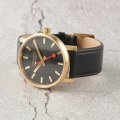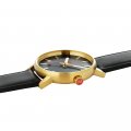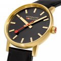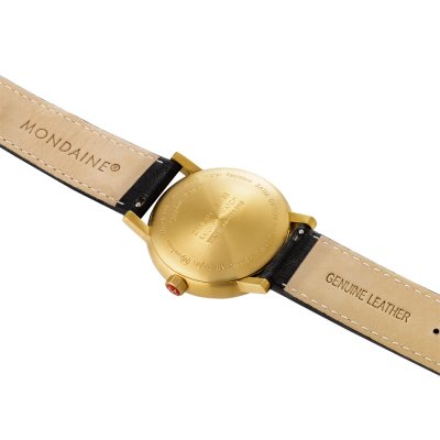 Este relógio Mondaine tem uma caixa de Inox com um diâmetro de 40 mm e está equipado com uma bracelete de couro. A caixa possui um movimento Ronda e o relógio tem um vidro Safira.