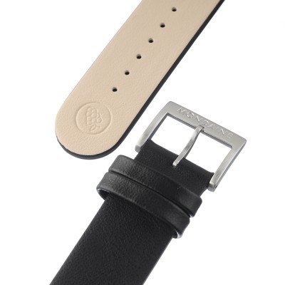 Esta bracelete de relógio Mondaine é feita de couro vegan e está fixada ao relógio através de pinos carregados por mola de liberação rápida. A bracelete tem uma largura de 20 mm e fecha através de fecho. A bracelete tem uma montagem a direito, o que significa que esta bracelete é adequada para todos os relógios Mondaine com montagem da bracelete a direito.