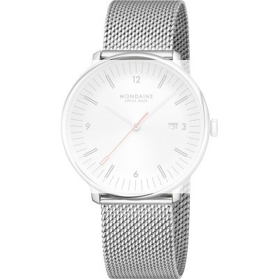 Esta bracelete de relógio Mondaine é feita de aço inoxidável e está fixada ao relógio através de pinos carregados por mola de liberação rápida. A bracelete tem uma largura de 20 mm e fecha através de fecho milanese. A bracelete tem uma montagem a direito, o que significa que esta bracelete é adequada para todos os relógios Mondaine com montagem da bracelete a direito.