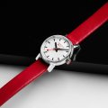 Este relógio Mondaine tem uma caixa de Inox com um diâmetro de 26 mm e está equipado com uma bracelete de Couro vegan. A caixa possui um movimento Ronda e o relógio tem um vidro Safira.