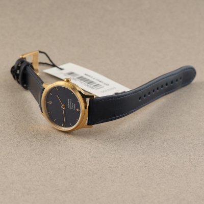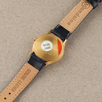 Este relógio Mondaine tem uma caixa de Inox com um diâmetro de 26 mm e está equipado com uma bracelete de couro. A caixa possui um movimento Ronda e o relógio tem um vidro Safira.