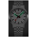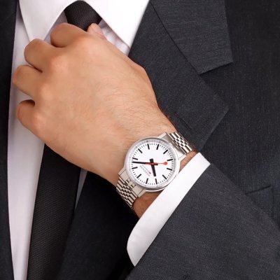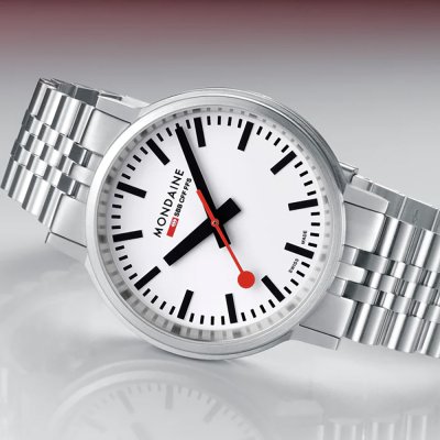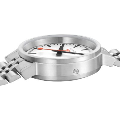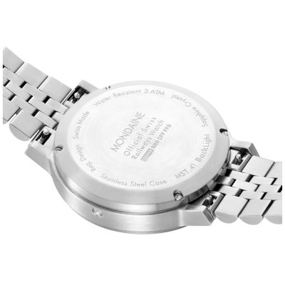 Este relógio Mondaine tem uma caixa de Inox com um diâmetro de 41 mm e está equipado com uma bracelete de Inox. A caixa possui um movimento Mondaine e o relógio tem um vidro Safira anti-reflexo única.