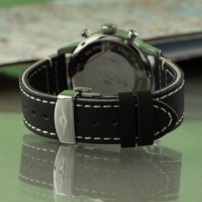 Este relógio Mondia tem uma caixa de Inox com um diâmetro de 40 mm e está equipado com uma bracelete de couro. A caixa possui um movimento Miyota e o relógio tem um vidro Mineral.