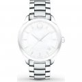 Esta bracelete de relógio Movado é feita de aço inoxidável e está fixada ao relógio através de pinos de pressão. A bracelete tem uma largura de 18 mm e fecha através de fivela dobrável com botões de pressão. A bracelete não tem uma montagem a direito, o que significa que esta bracelete só é adequada para os relógios listados abaixo.