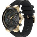 Este relógio Movado tem uma caixa de Inox com um diâmetro de 44 mm e está equipado com uma bracelete de borracha.