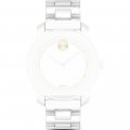 Esta bracelete de relógio Movado é feita de aço inoxidável e está fixada ao relógio através de pinos de pressão. A bracelete tem uma largura de 18 mm e fecha através de fivela butterfly com botões de pressão. A bracelete não tem uma montagem a direito, o que significa que esta bracelete só é adequada para os relógios listados abaixo.