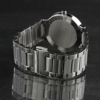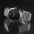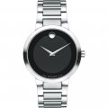 Este relógio Movado tem uma caixa de Inox com um diâmetro de 39.2 mm e está equipado com uma bracelete de Inox. A caixa possui um movimento Ronda e o relógio tem um vidro Safira.