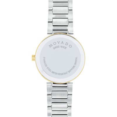 Este relógio Movado tem uma caixa de Inox com um diâmetro de 28 mm e está equipado com uma bracelete de Inox. A caixa possui um movimento ETA e o relógio tem um vidro Safira.