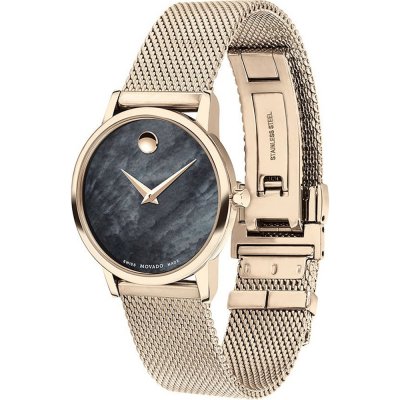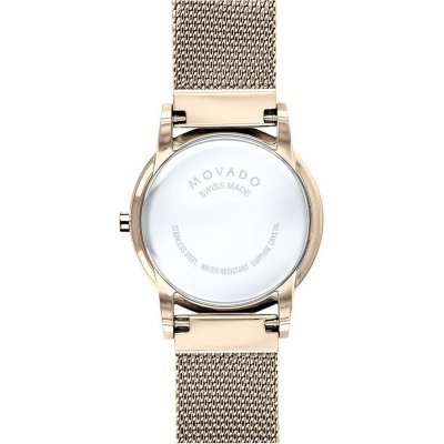 Este relógio Movado tem uma caixa de Inox com um diâmetro de 28 mm e está equipado com uma bracelete de Inox. A caixa possui um movimento ETA e o relógio tem um vidro Safira.