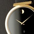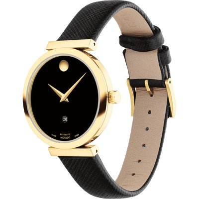Este relógio Movado tem uma caixa de Inox com um diâmetro de 32 mm e está equipado com uma bracelete de couro. A caixa possui um movimento Sellita e o relógio tem um vidro Safira.