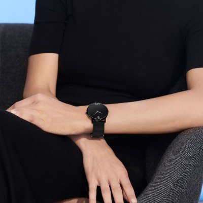 O Movado Museum Classic tem um mostrador que mais se aproxima do design original. Com um aspeto tão puro e minimalista, não há lugar para descuidos. O mostrador lacado com acabamento mate - onde apenas uma pequena janela de data quebra a harmonia - contrasta com o ponto caraterístico do meio-dia. Os ponteiros Dauphine, belamente esculpidos e afiados, acrescentam outra camada nítida e um nível de interesse, demonstrando uma atenção extrema aos pormenores. O relógio é alimentado por um movimento suíço automático SW200 com 38 horas de reserva de marcha, visível através do fundo da caixa.