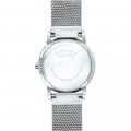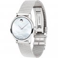 Este relógio Movado tem uma caixa de Inox com um diâmetro de 28 mm e está equipado com uma bracelete de Inox. A caixa possui um movimento ETA e o relógio tem um vidro Safira.