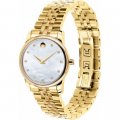 Este relógio Movado tem uma caixa de Inox com um diâmetro de 28 mm e está equipado com uma bracelete de Inox. A caixa possui um movimento ETA e o relógio tem um vidro Safira.