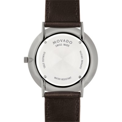 Este relógio Movado tem uma caixa de Inox com um diâmetro de 40 mm e está equipado com uma bracelete de couro. A caixa possui um movimento Ronda e o relógio tem um vidro Safira.