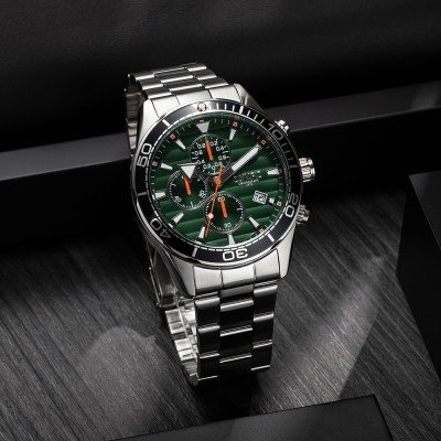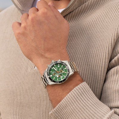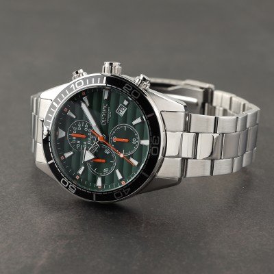 Este relógio Olympic tem uma caixa de Inox com um diâmetro de 44 mm e está equipado com uma bracelete de Inox. A caixa possui um movimento Seiko Instruments Inc. e o relógio tem um vidro Mineral.
