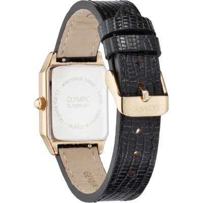 Este relógio Olympic tem uma caixa de Inox com um diâmetro de 33 mm e está equipado com uma bracelete de couro. A caixa possui um movimento Miyota e o relógio tem um vidro Safira.