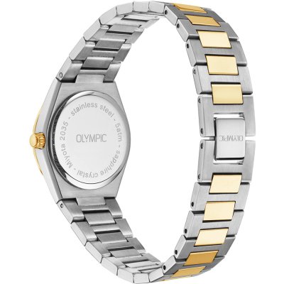 Este relógio Olympic tem uma caixa de Inox com um diâmetro de 29 mm e está equipado com uma bracelete de Inox. A caixa possui um movimento Miyota e o relógio tem um vidro Safira.