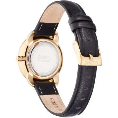 Este relógio Olympic tem uma caixa de Inox com um diâmetro de 31 mm e está equipado com uma bracelete de couro. A caixa possui um movimento Miyota e o relógio tem um vidro Mineral.