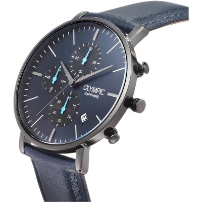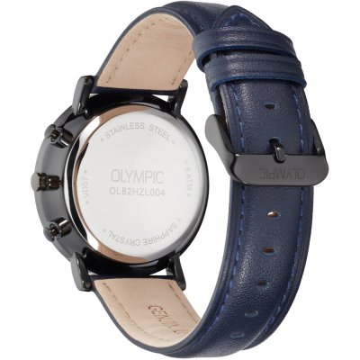 Este relógio Olympic tem uma caixa de Inox com um diâmetro de 40 mm e está equipado com uma bracelete de couro. A caixa possui um movimento Seiko Instruments Inc. e o relógio tem um vidro Safira.