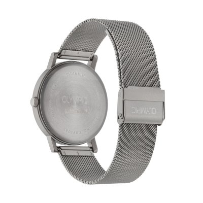 Este relógio Olympic tem uma caixa de Titânio com um diâmetro de 40 mm e está equipado com uma bracelete de Inox. A caixa possui um movimento Miyota e o relógio tem um vidro Safira.