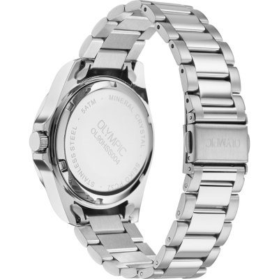 Este relógio Olympic tem uma caixa de Inox com um diâmetro de 40 mm e está equipado com uma bracelete de Inox. A caixa possui um movimento Seiko Instruments Inc. e o relógio tem um vidro Mineral.