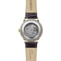 Este relógio Orient tem uma caixa de Inox com um diâmetro de 40 mm e está equipado com uma bracelete de couro. A caixa possui um movimento Orient e o relógio tem um vidro Mineral.