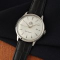 Este relógio Orient tem uma caixa de Inox com um diâmetro de 40 mm e está equipado com uma bracelete de couro. A caixa possui um movimento Orient e o relógio tem um vidro Mineral.