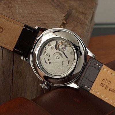 Este relógio Orient tem uma caixa de Inox com um diâmetro de 38 mm e está equipado com uma bracelete de couro. A caixa possui um movimento Seiko Instruments Inc. e o relógio tem um vidro Mineral.