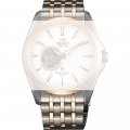 Esta bracelete de relógio Orient é feita de aço inoxidável e está fixada ao relógio através de pinos de pressão. A bracelete tem uma largura de 22 mm e fecha através de fivela dobrável com botões de pressão. A bracelete não tem uma montagem a direito, o que significa que esta bracelete só é adequada para os relógios listados abaixo.