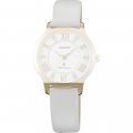 Esta bracelete de relógio Orient é feita de couro e está fixada ao relógio através de pinos de pressão. A bracelete tem uma largura de 14 mm e fecha através de fecho. A bracelete tem uma montagem a direito, o que significa que esta bracelete é adequada para todos os relógios Orient com montagem da bracelete a direito.