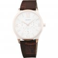 Esta bracelete de relógio Orient é feita de couro e está fixada ao relógio através de pinos de pressão. A bracelete tem uma largura de 18 mm e fecha através de fecho. A bracelete tem uma montagem a direito, o que significa que esta bracelete é adequada para todos os relógios Orient com montagem da bracelete a direito.
