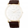 Esta bracelete de relógio Orient é feita de couro e está fixada ao relógio através de pinos de pressão. A bracelete tem uma largura de 22 mm e fecha através de fecho. A bracelete tem uma montagem a direito, o que significa que esta bracelete é adequada para todos os relógios Orient com montagem da bracelete a direito.