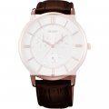 Esta bracelete de relógio Orient é feita de couro e está fixada ao relógio através de pinos de pressão. A bracelete tem uma largura de 22 mm e fecha através de fecho. A bracelete tem uma montagem a direito, o que significa que esta bracelete é adequada para todos os relógios Orient com montagem da bracelete a direito.