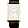Esta bracelete de relógio Orient é feita de couro e está fixada ao relógio através de pinos de pressão. A bracelete tem uma largura de 22 mm e fecha através de fecho. A bracelete tem uma montagem a direito, o que significa que esta bracelete é adequada para todos os relógios Orient com montagem da bracelete a direito.