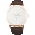 Esta bracelete de relógio Orient é feita de couro e está fixada ao relógio através de pinos de pressão. A bracelete tem uma largura de 22 mm e fecha através de fecho. A bracelete tem uma montagem a direito, o que significa que esta bracelete é adequada para todos os relógios Orient com montagem da bracelete a direito.