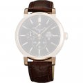 Esta bracelete de relógio Orient é feita de couro e está fixada ao relógio através de pinos de pressão. A bracelete tem uma largura de 20 mm e fecha através de fecho. A bracelete tem uma montagem a direito, o que significa que esta bracelete é adequada para todos os relógios Orient com montagem da bracelete a direito.