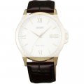 Esta bracelete de relógio Orient é feita de couro e está fixada ao relógio através de pinos de pressão. A bracelete tem uma largura de 22 mm e fecha através de fecho. A bracelete tem uma montagem a direito, o que significa que esta bracelete é adequada para todos os relógios Orient com montagem da bracelete a direito.