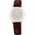 Esta bracelete de relógio Orient é feita de couro e está fixada ao relógio através de pinos de pressão. A bracelete tem uma largura de 14 mm e fecha através de fecho. A bracelete tem uma montagem a direito, o que significa que esta bracelete é adequada para todos os relógios Orient com montagem da bracelete a direito.