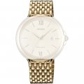 Esta bracelete de relógio Orient é feita de aço inoxidável e está fixada ao relógio através de pinos em aço. A bracelete tem uma largura de 18 mm e fecha através de fivela joalheria. A bracelete não tem uma montagem a direito, o que significa que esta bracelete só é adequada para os relógios listados abaixo.