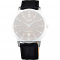 Esta bracelete de relógio Orient é feita de couro e está fixada ao relógio através de pinos de pressão. A bracelete tem uma largura de 20 mm e fecha através de fecho. A bracelete tem uma montagem a direito, o que significa que esta bracelete é adequada para todos os relógios Orient com montagem da bracelete a direito.