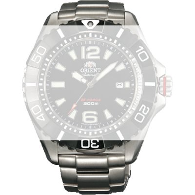 Esta bracelete de relógio Orient é feita de titânio e está fixada ao relógio através de pinos de pressão. A bracelete tem uma largura de 23 mm e fecha através de fivela dobrável com botões de pressão e segurança. A bracelete não tem uma montagem a direito, o que significa que esta bracelete só é adequada para os relógios listados abaixo.