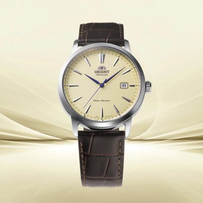 Este relógio Orient tem uma caixa de Inox com um diâmetro de 42 mm e está equipado com uma bracelete de couro. A caixa possui um movimento Orient e o relógio tem um vidro Mineral.