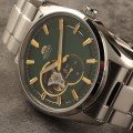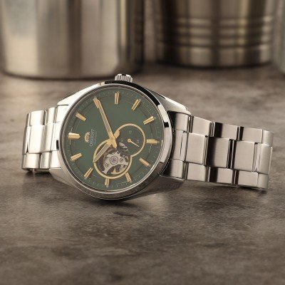 Este relógio Orient tem uma caixa de Inox com um diâmetro de 41 mm e está equipado com uma bracelete de Inox. A caixa possui um movimento Seiko Instruments Inc. e o relógio tem um vidro Safira.