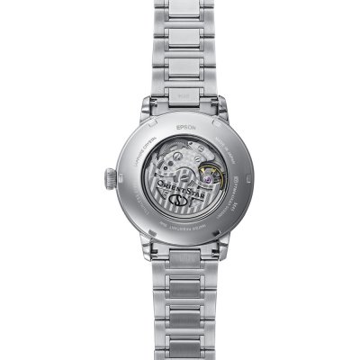 Este relógio Orient tem uma caixa de Inox com um diâmetro de 41 mm e está equipado com uma bracelete de metal. A caixa possui um movimento Orient e o relógio tem um vidro Safira.