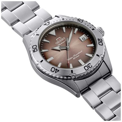 Este relógio Orient tem uma caixa de Inox com um diâmetro de 39 mm e está equipado com uma bracelete de Inox. A caixa possui um movimento Orient e o relógio tem um vidro Safira.