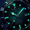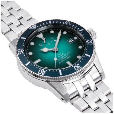 Este Orient Star M42 é baseado no Orient Calendar Auto de 1964, um dos primeiros relógios de mergulho da Orient. Embora esta nova edição reflicta os designs do original, foram acrescentadas caraterísticas modernas, como um fundo de caixa aparafusado, um vidro de safira curvo duplo com revestimento antirreflexo e uma resistência à água de 20 ATM em conformidade com a norma ISO 6425. O relógio é alimentado por um movimento automático interno da série 46-F6, calibre F6N47, que proporciona uma reserva de marcha de mais de 50 horas. Um simples mostrador com ponteiro às 12 horas serve de indicador de reserva de marcha. A forte luminosidade dos índices das horas e dos ponteiros em forma de catedral contrasta lindamente com o mostrador de gradiente verde. O relógio é fornecido com uma bracelete extra em silicone com saliências em forma de pirâmide que fazem lembrar o design da bracelete do original de 1964.