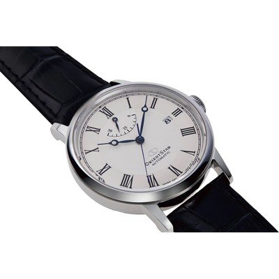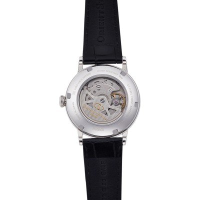 Este relógio Orient tem uma caixa de Inox com um diâmetro de 39 mm e está equipado com uma bracelete de couro. A caixa possui um movimento Seiko Instruments Inc. e o relógio tem um vidro Mineral.
