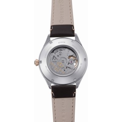 Este relógio Orient tem uma caixa de Inox com um diâmetro de 40.5 mm e está equipado com uma bracelete de couro. A caixa possui um movimento Seiko Instruments Inc. e o relógio tem um vidro Mineral.