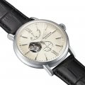 Este relógio Orient tem uma caixa de Inox com um diâmetro de 40 mm e está equipado com uma bracelete de couro. A caixa possui um movimento Seiko Instruments Inc. e o relógio tem um vidro Mineral.
