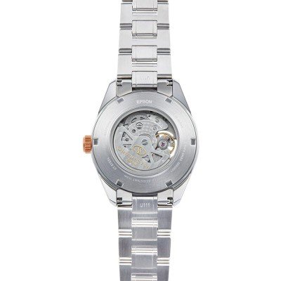 Este relógio Orient tem uma caixa de Inox com um diâmetro de 41 mm e está equipado com uma bracelete de Inox. A caixa possui um movimento Seiko Instruments Inc. e o relógio tem um vidro Safira.